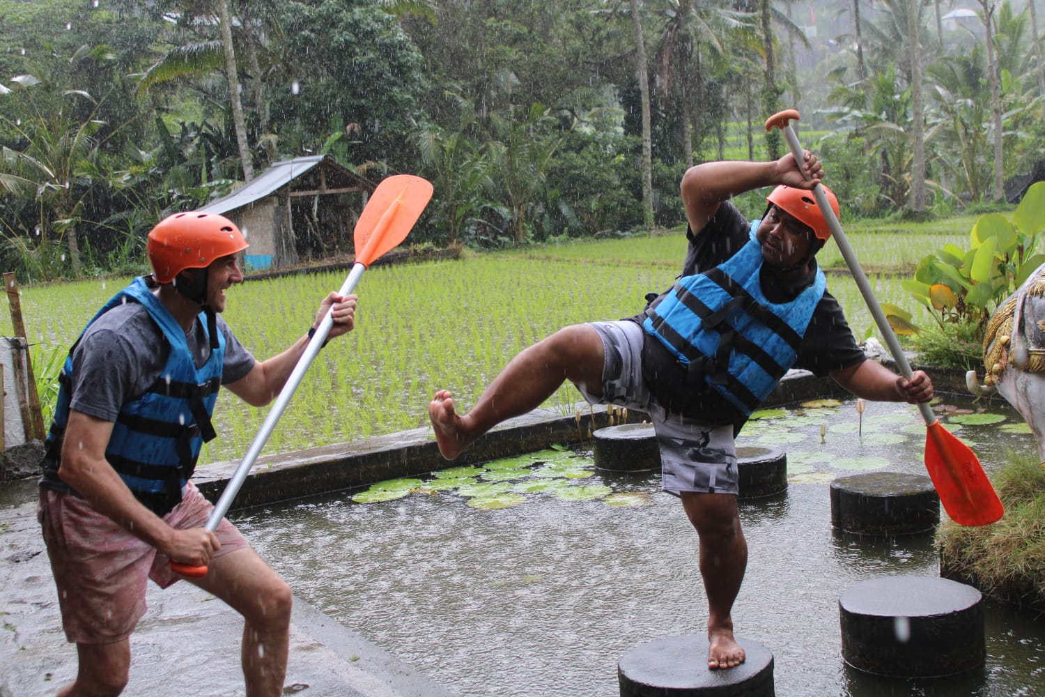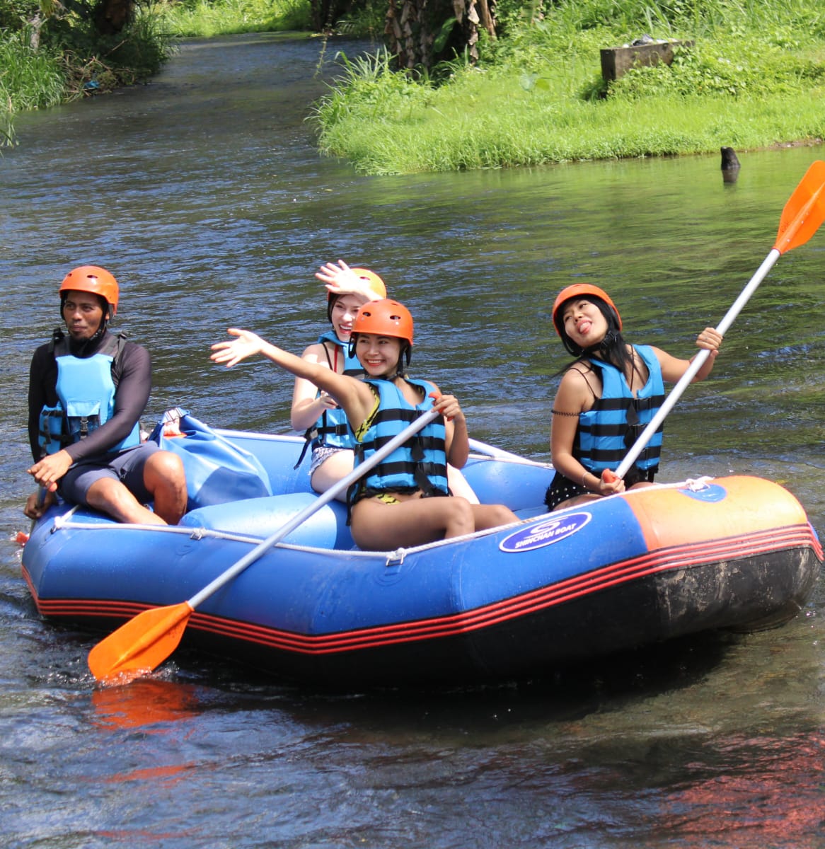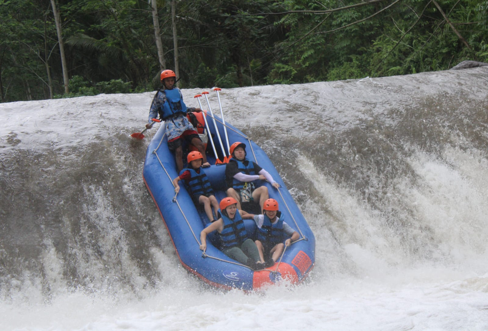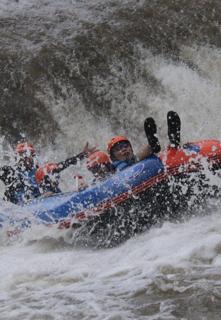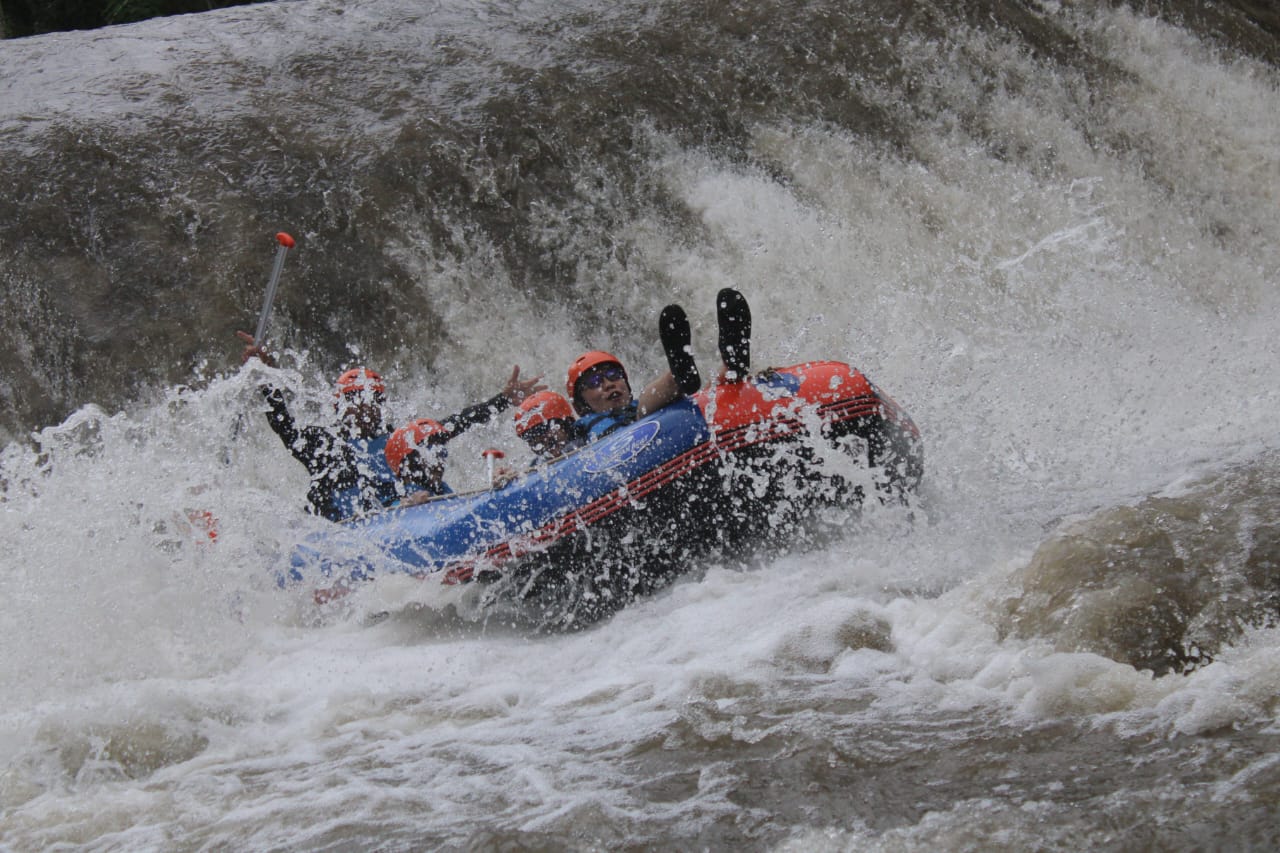 International safety standard equipment is used throughout the 2.5 hours of white water rafting action. Have huge fun and a great adventure with us on the Telaga Waja River.